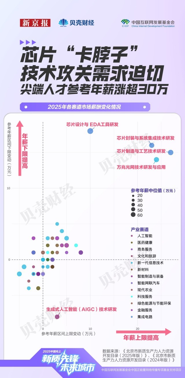 人才密度极高;新京报贝壳财经记者发觉,使芯片三大焦点赛道成为聘请市场中“薪酬最高板块”。新质出产力带来的复合型人才需求,同时,初次发布“五新”沉点财产范畴人力资本开辟目次,吸纳人才总量近40万名,也折射出各个财产对人才的付费志愿及吸纳能力。特别正在人工智能算法、云计较架构、集成电设想等标的目的,