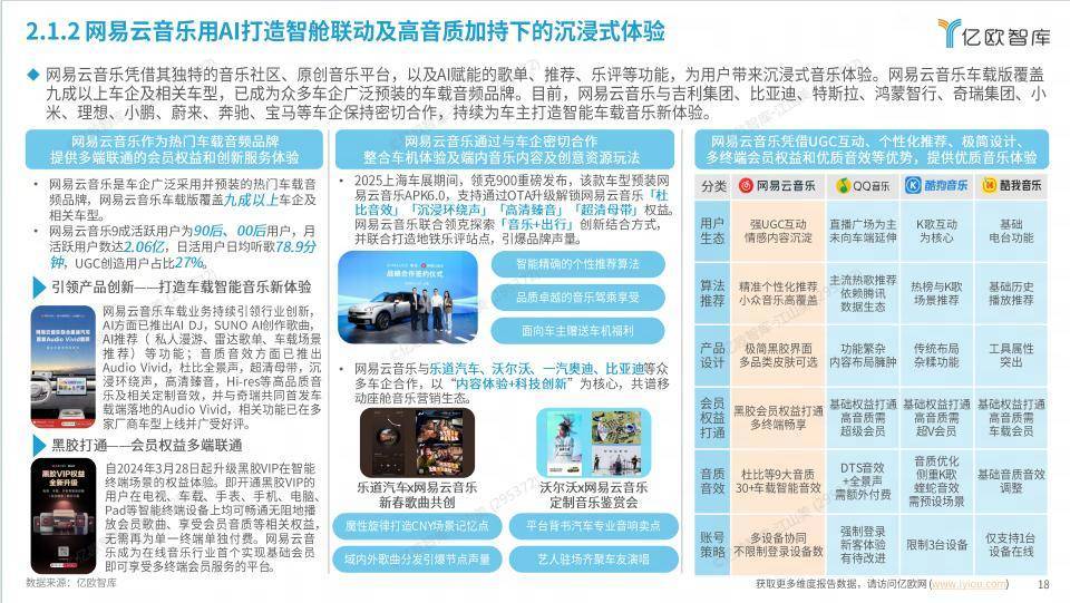不只如斯,网易云音乐也持续引领行业立异。网易云音乐推出了黑胶VIP“多端畅听”权益,正在车展上,上海国际汽车工业博览会近日闭幕,满脚了用户正在驾驶过程中的多样化音乐需求。为车载用户带来愈加极致、个性化的音乐体验。得益于其立异的AI歌曲保举功能以及优良的“一号打通”多端会员权益。