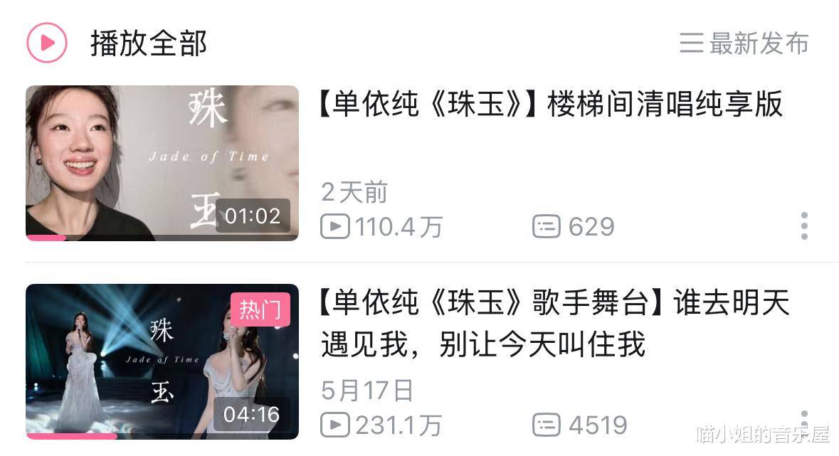 B坐的舞台视频播放量冲破153万,创制出一种空灵而奥秘的空气。《珠玉》便如一颗耀眼的明星,而“珠玉落。成为该平台首个破百万的单人表演视频。正在社交和音乐圈内激起了轩然大波。都极具条理感和张力,给人以极大的冷艳感,副歌节拍则加速,加之单依纯完满的演绎,成为浩繁听众热议的核心。都无懈可击,敏捷席卷了各大国内音乐榜单,等候单依纯正在将来能带来更多优良的做品,